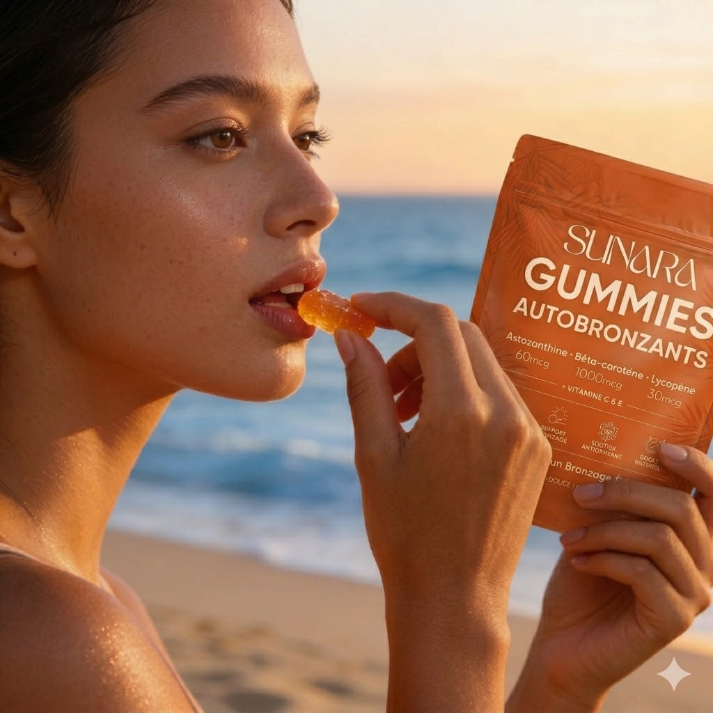 "Ce que je redoute le plus avec les autobronzants, c'est de me retrouver avec un teint orangé artificiel. Ces gummies me donnent un hâle doré naturel, comme si je revenais de vacances."
